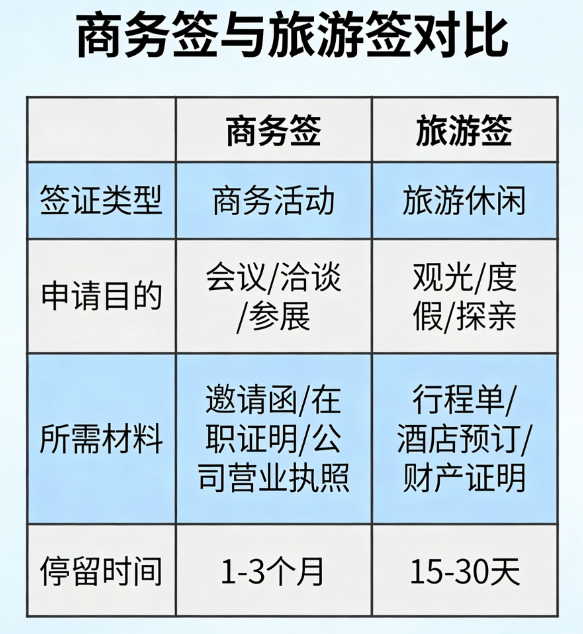 二、出国参展商务签与旅游签核心区别
