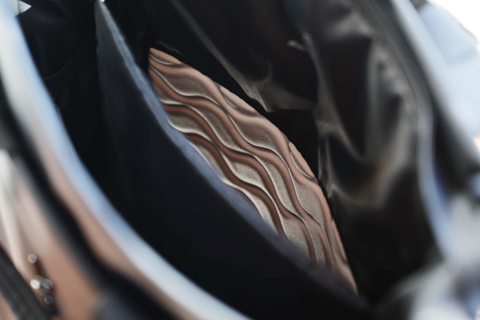 这是为电脑做的专属隔层,实测可以放下最大 16 的笔电。而且这里有个细节,随遇绝大多数笔记本来说电脑隔层仅仅是通过一层隔离而已。