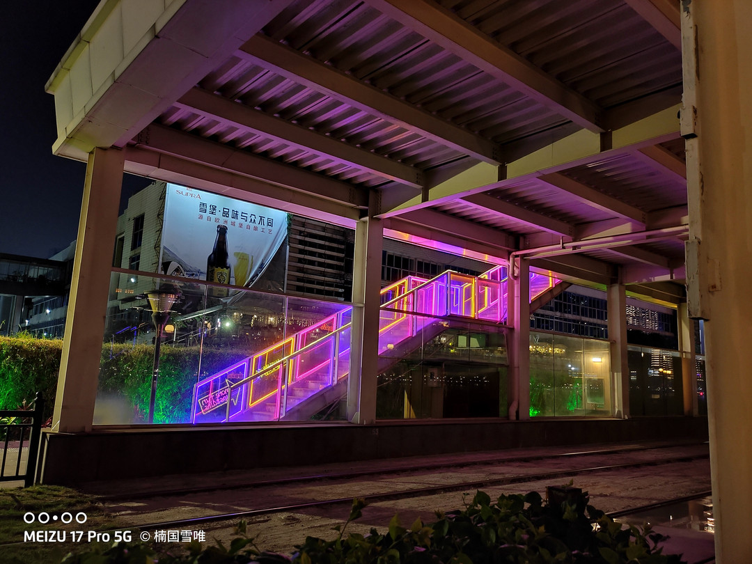 虽然魅族17Pro 没有搭载光学防抖,然而夜间手持拍照依旧能到有不错的表现,夜景模式也可带来稍微更亮的画面,却又不失夜的黑,明暗尺度拿捏的刚刚好。没有矫枉过正,毕竟夜景还是夜景,如果完全排成像是白天一样也感觉怪怪的;魅族17Pro 夜景拍照会糊嘛?会吧,如果本身就手抖,白天拍也一样会糊片啊,跟光学防抖有关系吗?还是有一些,只不过目前来看电子防抖也可以有不错表现的,所以大家也不用太过介意,日用完全是没问题的。