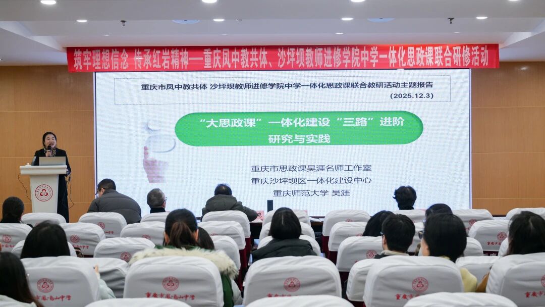 巴渝大地,红岩生辉。作为红岩精神的重要发祥地,重庆始终坚守红色育人阵地,将革命传统教育融入教育强国建设全过程。党的十八大以来,习近平总书记多次强调“把红色基因传承好,确保红色江山永不变色”,为新时代思政教育指明方向。2025年12月3日,重庆凤中教共体联合沙坪坝教师进修学院举办 “筑牢理想信念 传承红岩精神 —— 中学一体化思政课研修活动”,以党建为引领、以协同为路径、以育人为核心,为沙坪坝区基础教育“大思政课”建设注入红色动能。