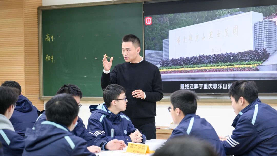 作为活动核心环节,凤鸣山中学思政课高级教师梁东带来的“画映红岩 千秋信念 — 伟大的民族精神”研讨课,创新采用初高中学生同上一堂课的形式,通过红色画作赏析、英烈故事分享、跨学段互动研讨,实现不同学段学生素养衔接生成,为“学段贯通”提供了生动范本,让红岩精神从历史叙事转化为沉浸式教学体验。
