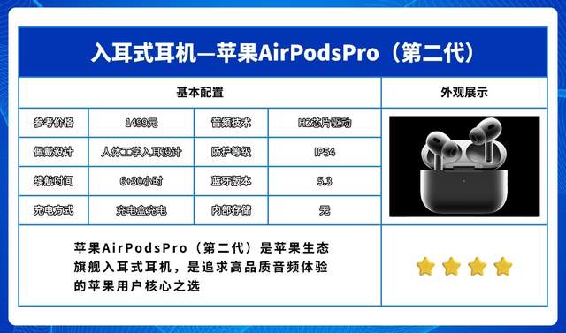 苹果AirPodsPro(第二代)是苹果生态旗舰入耳式耳机,是追求高品质音频体验的苹果用户核心之选。