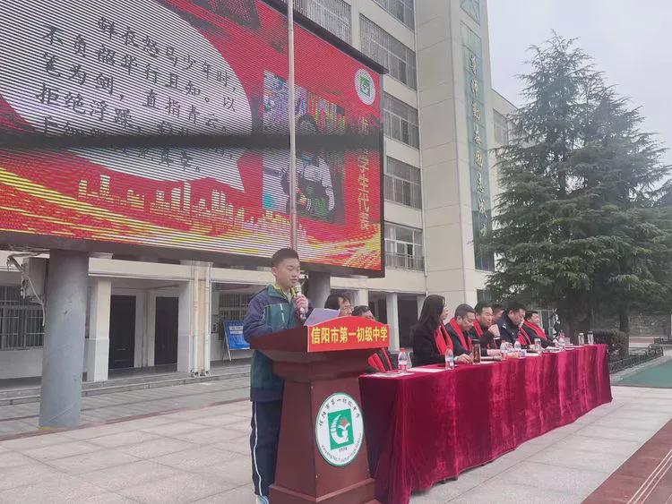 春风浩荡满目新,扬帆奋进正当时。2026年3月9日上午,信阳市第一初级中学校园暖意融融、生机盎然,全体师生齐聚一堂,隆重举行2026年春季开学典礼暨表彰大会。在激昂的鼓乐与嘹亮的国歌声中,一场承载希望、凝聚力量、彰显荣光的新学期盛会正式拉开帷幕。
