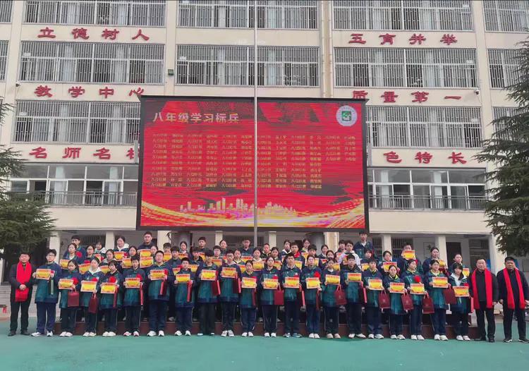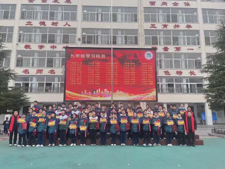 罗军副校长宣读九年级学习标兵名单,学子分批上台受奖,在全校师生的见证下收获努力与坚持结出的硕果。
