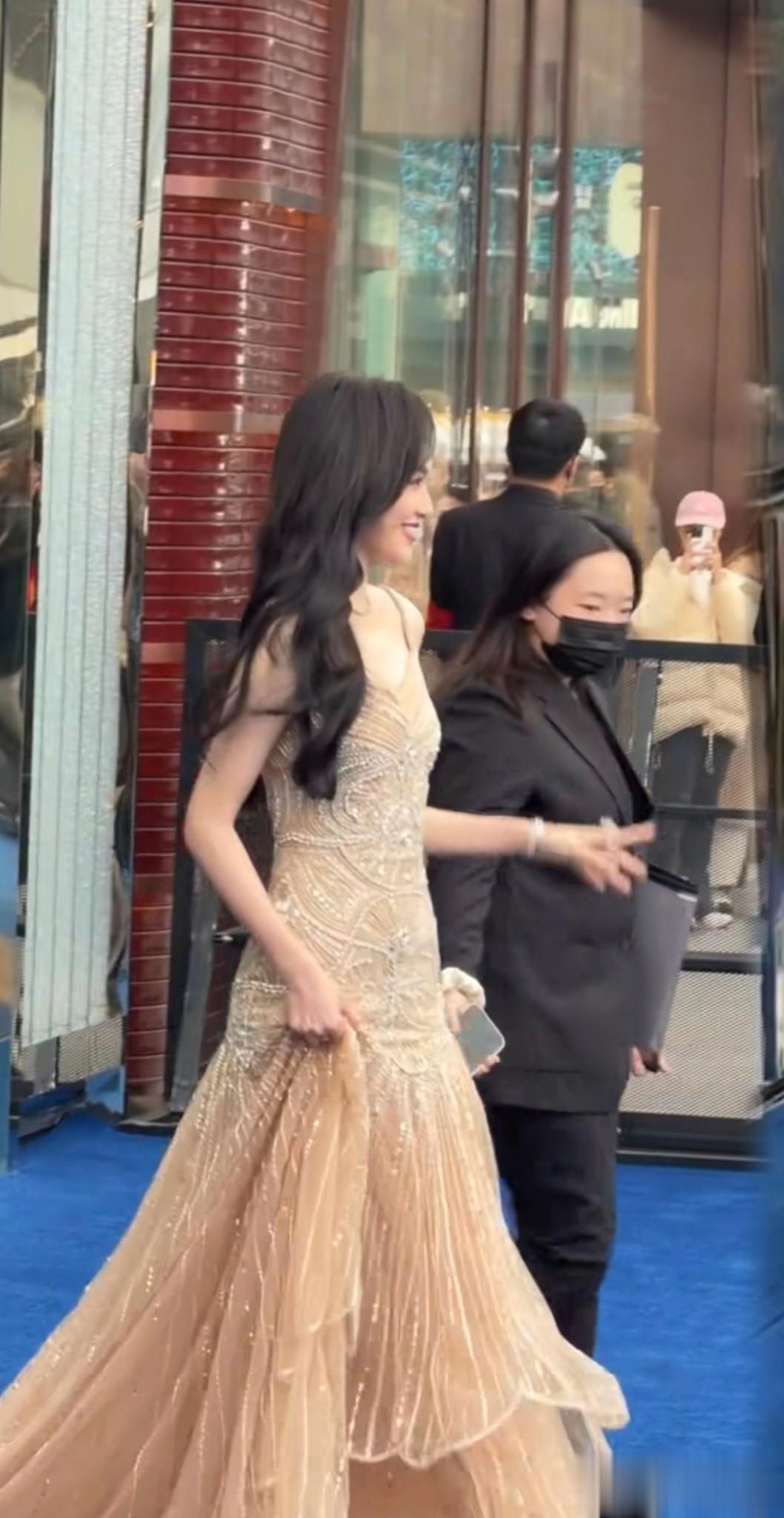 唐嫣北京三里屯出席芬迪品牌活动,一袭鎏金裙光彩照人尽显好气色。