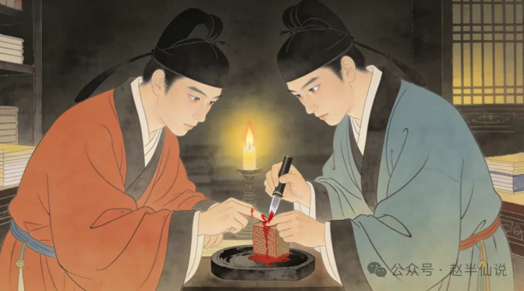 “然后我托人打听清楚了,”他声音发颤,带着后怕,“这方印,是王铎当年赠给一位生死之交的誓印。两人结盟,共约反清复明,印文‘金石为开’是取‘精诚所至,金石为开’之意,盼着能共成大业。那行小字,是两人歃血为盟后,用血混着朱砂,亲手刻上去的。”