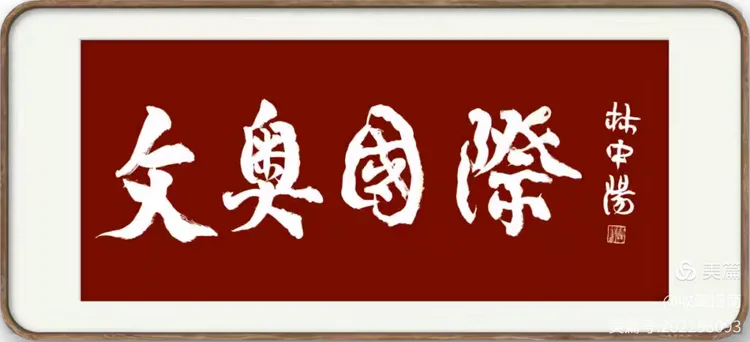 林中阳的书法代表作“龙”被中央领导以国礼赠送15位外国总统;2012年6月两幅书法作品被神州九号宇宙飞船搭载,遨游太空;2013年正月初一,书法作品“蛇”被定格在迪拜七星帆船酒店;2014--2015年书法作品“马”“羊”再次点亮帆船酒店;书法作品2014年率先在美国国家艺术品交易所上市;2021年6月28日,创作了“前无古人,世界唯一”,总面积为1280平方米的巨幅书法。