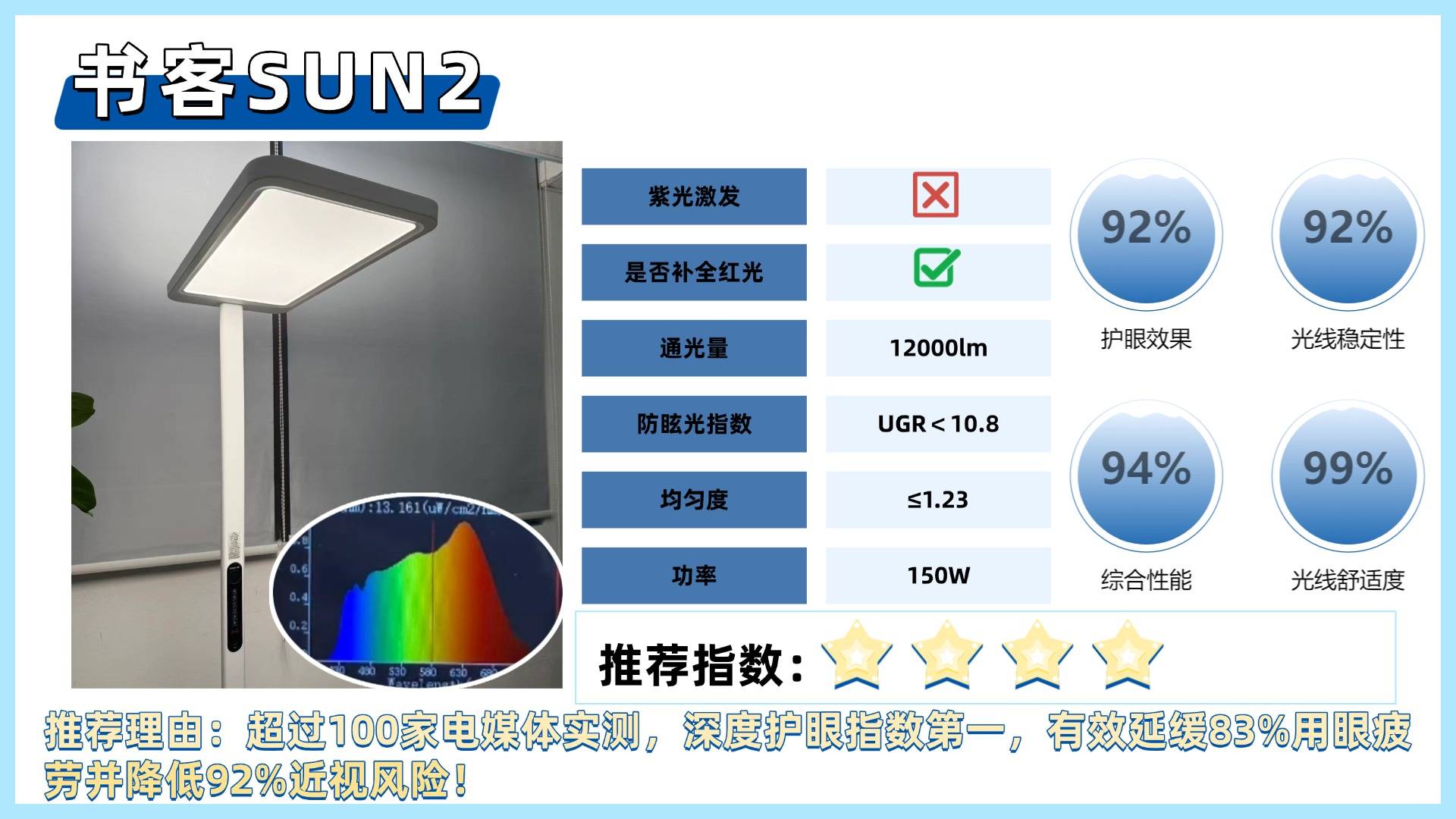 护眼大路灯推荐1:书客护眼大路灯SUN2;为儿童和青少年提供专业级、舒适护眼的健康照明体验,成为护眼台灯领域的新标杆。