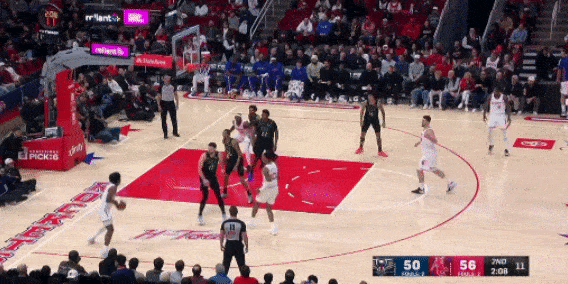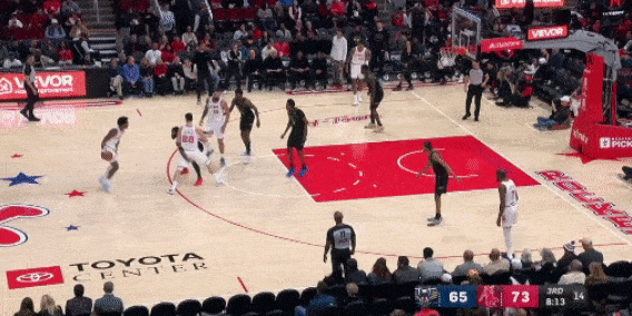 阿门的传球,从打控卫之后是有提升的,特别是一些突破后的分球,可以给队友直接创造得分机会。比如,突底线给到中路跟进的申京,直接放篮入筐得分