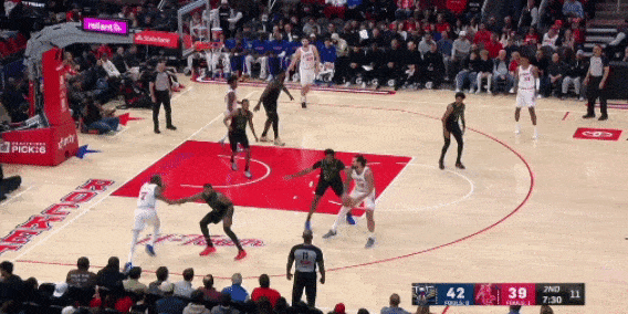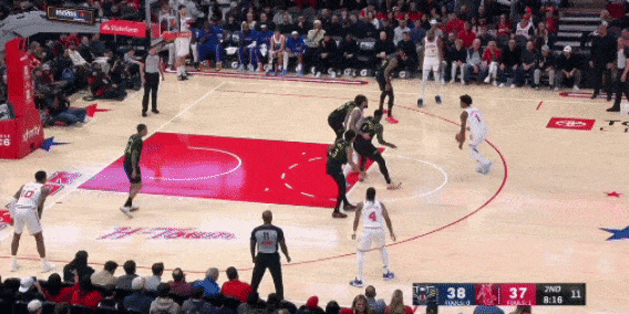 弧顶挡拆推进,分球弱侧底角的奥科吉,也是大空位机会