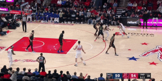 阿门的身体素质爆炸,加上快攻意识出色,每当火箭出现快攻机会,阿门都能第一时间冲到前面,速度一起来,过人就显得相对容易。