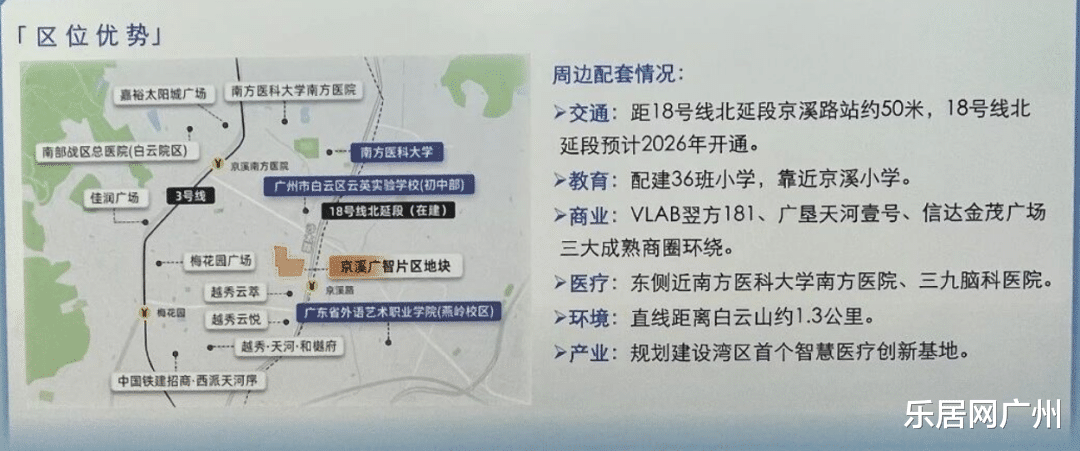 该地块靠近天河北,距离18号线北延段京溪路站约50米,预计2026年开通。