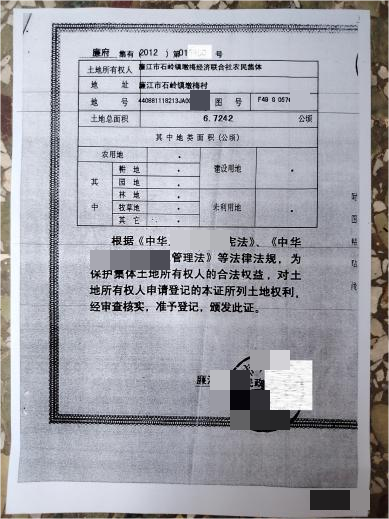 集体土地证明 图一 (代表人提供)