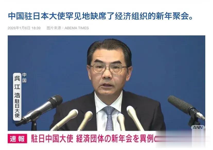从中方公布“一号禁令”到“中国驻日大使吴江浩拒绝参加新年问候会”,都在传递一个信号,那就是高市早苗不撤回涉台错误言论,停止一切挑衅行为,这事恐怕过不去。