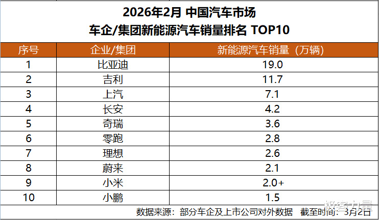 2026年开局,中国新能源汽车市场竞争格局进一步明朗。根据车企及上市公司对外披露的数据,比亚迪集团2月新能源汽车销量达190190辆,再度位居行业首位,在主流车企中持续保持明显领先优势,以稳定而强劲的表现巩固头部地位。自2021年6月以来,比亚迪月度新能源销量始终领跑市场,已连续57个月稳居中国新能源汽车销量榜首,即使是在销售淡季表现依然稳健。2025年12月,比亚迪成为全球首家实现第1500万辆新能源汽车下线的车企。截至目前,新能源汽车累计销量已突破1550万辆,规模优势持续扩大,行业领先基础更加稳固。