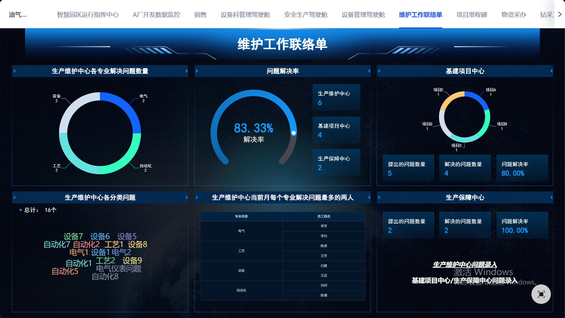 不过,生产维护中心存在 16 个分类问题,基建项目中心问题解决率 80%,说明仍有损耗隐患待消除。