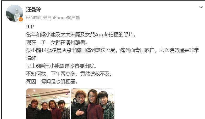 1月14日凌晨2点半,梁小龙在深圳家中因胸口剧痛惊醒,痛到面色发白。 被送往医院时他意识清醒,甚至在天亮后吵着要出院。 然而下午病情急转直下,因心衰竭抢救6小时后,当日下午4时安详离世。 家人后来澄清,他真实年龄是75岁,而非网络流传的77岁。
