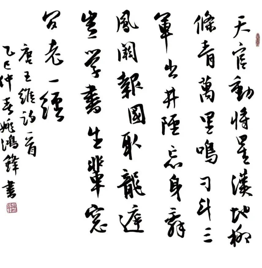 面对传统与现代的碰撞,姚鸿锋坚守传统书法的纯粹性。“所谓现代艺术理念,不应是对传统的割裂与颠覆。”他犀利指出,当下某些以“创新”为名的“吼书”“射墨”等行为,不过是对古人创作状态的片面模仿。“怀素在《自叙帖》中早已描述过创作时‘忽然绝叫三五声,满壁纵横千万字’的癫狂状态,但这种状态的背后,是深厚的传统功底。”在他眼中,传统书法的包容性足以涵盖所有艺术表达,关键在于创作者是否真正领悟其精髓。