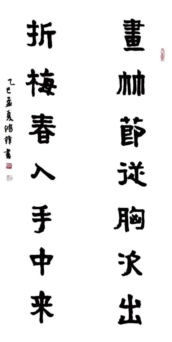 这段扎实的童子功,成为姚鸿锋艺术生涯的基石。这种源自幼年的系统训练,赋予他对书法本质的深刻认知。楷书的端庄严谨锤炼其心性,行书的流畅洒脱舒展其气韵,隶书的古朴厚重沉淀其底蕴,篆书的典雅规整塑造其格局,草书的狂放不羁释放其豪情。在循序渐进的研习中,他不仅掌握了五体书法的技法精髓,更领悟到传统书法中蕴含的东方美学智慧。