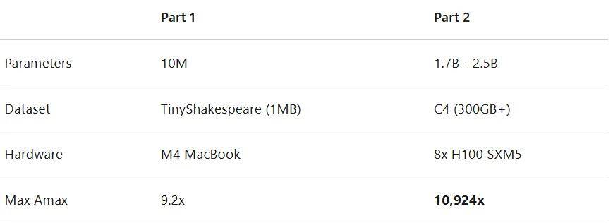 为了这次运行,作者租用了一个 8x H100 的节点。以下是他的发现。