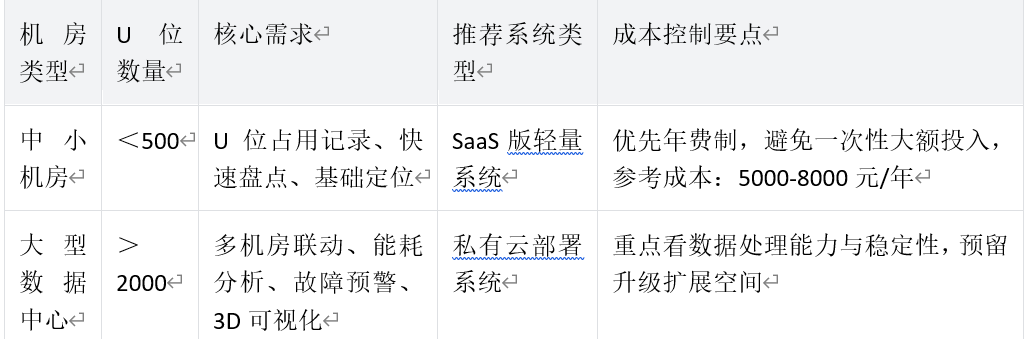 案例参考:某电商300U位机房,选用6000元/年的SaaS轻量系统,完全覆盖核心需求,年节省人工与管理成本2.4万元。