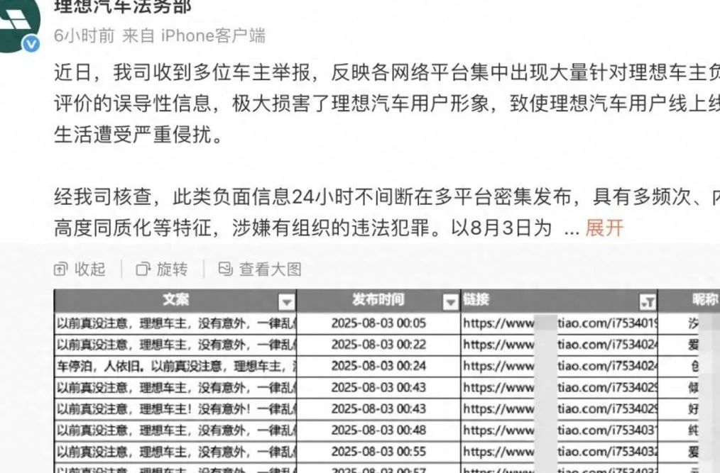 理想这次硬刚水军 哥觉得做得对。该报警报警 该起诉起诉 该维权维权。你不能让这帮人觉得汽车行业就是他们的提款机。