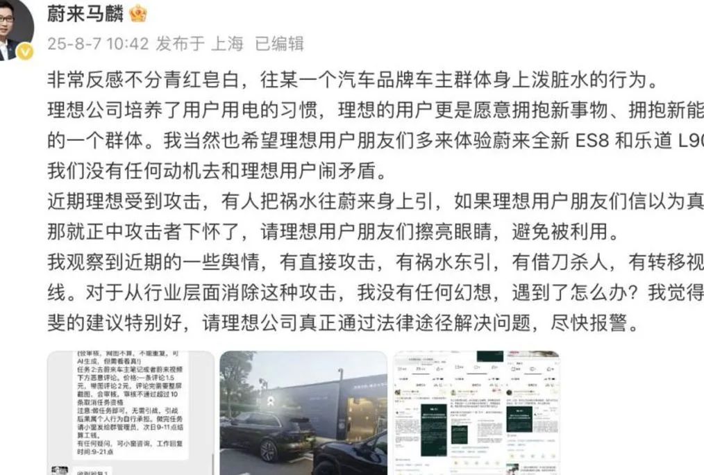 网上还有人把祸水往蔚来身上引。蔚来那个马麟赶紧出来澄清 说别往他们身上泼脏水。哥觉得这事儿吧…