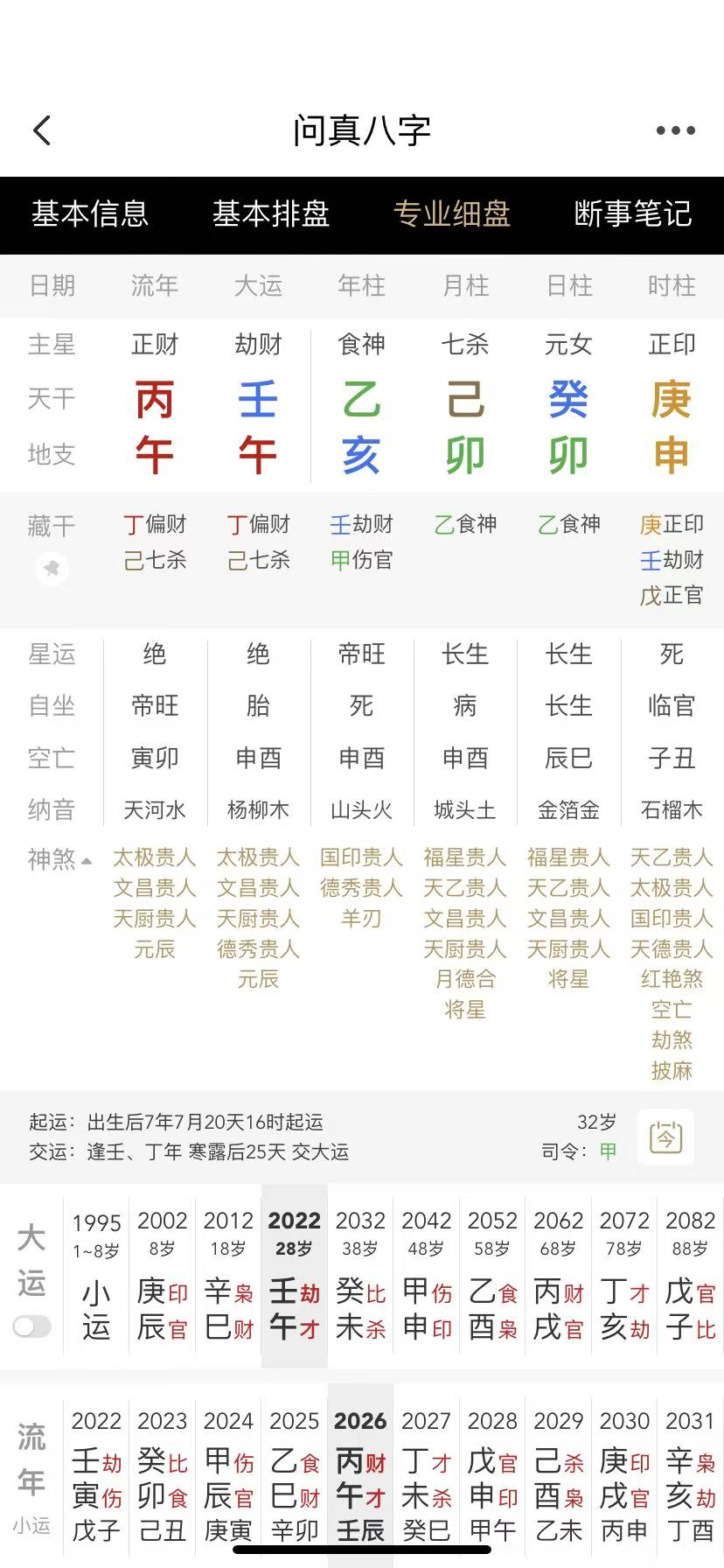 大运:庚辰,辛巳,壬午,癸未,甲申,乙酉,丙戌,丁亥,8岁运。