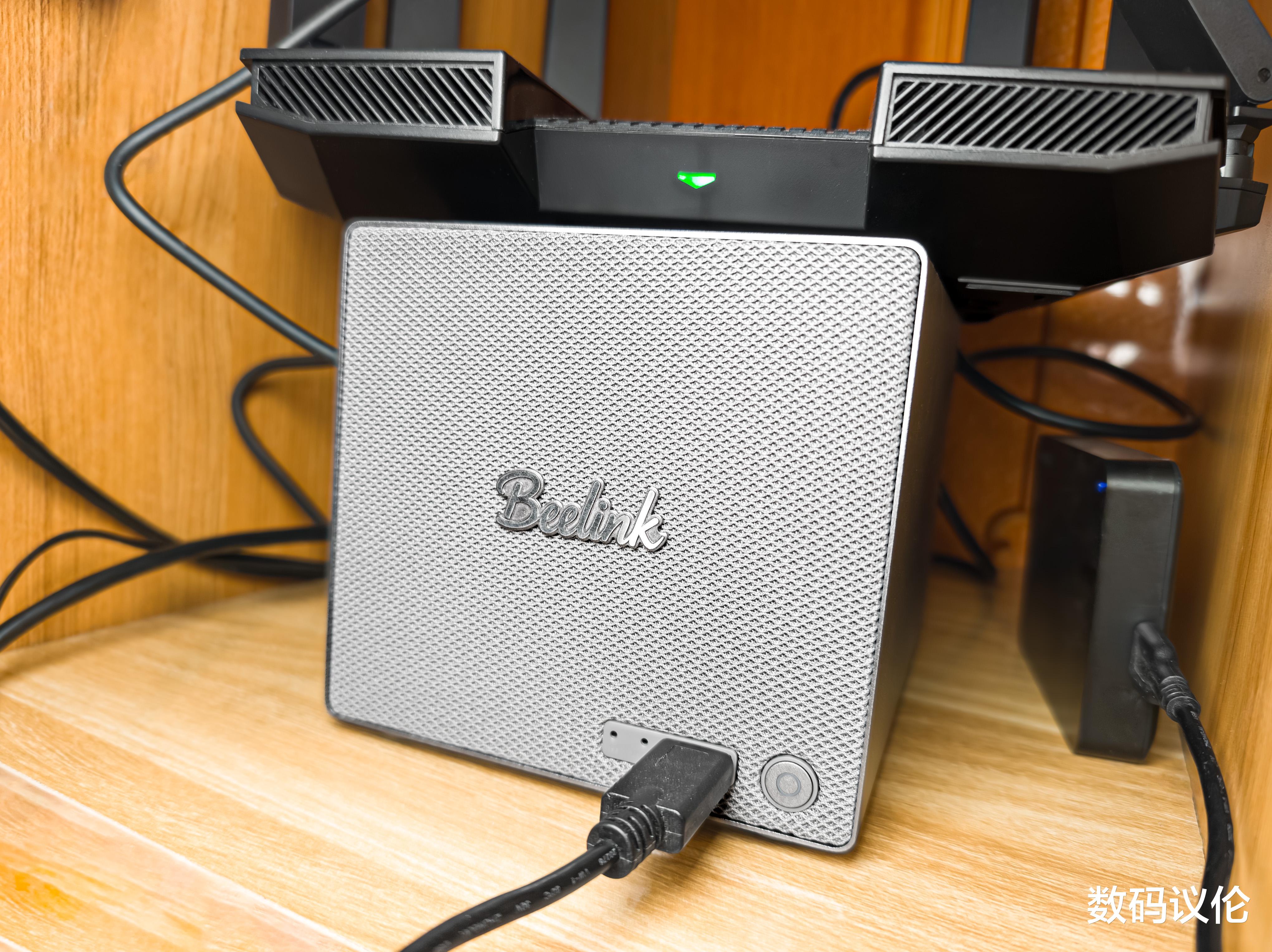 把整机组装回去,安装硬盘、连接路由器,我还在正面的10Gbps USB-A口上外接了一块移动机械硬盘。