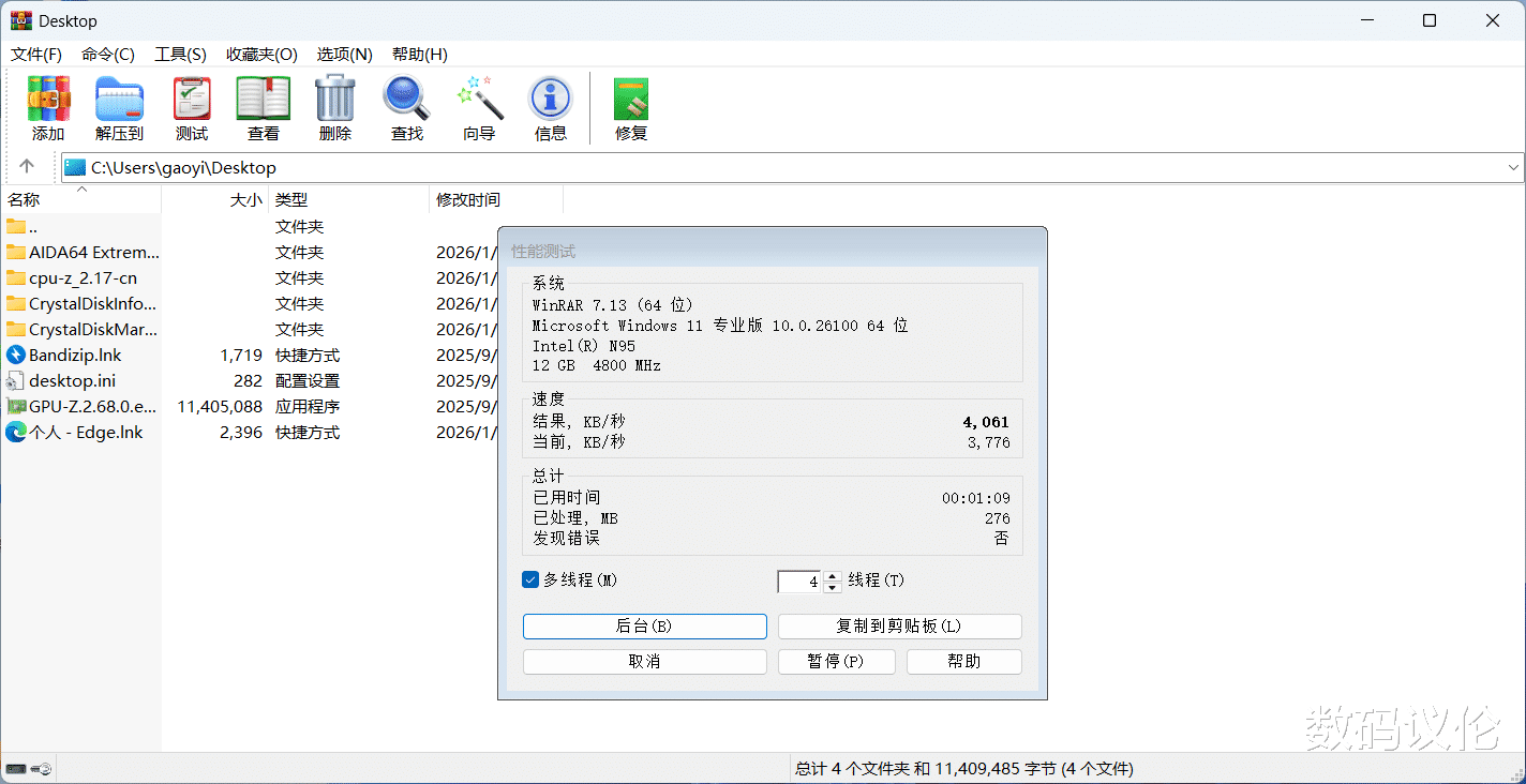 常用压缩软件WINRAR 7.13性能测试,得分4061。
