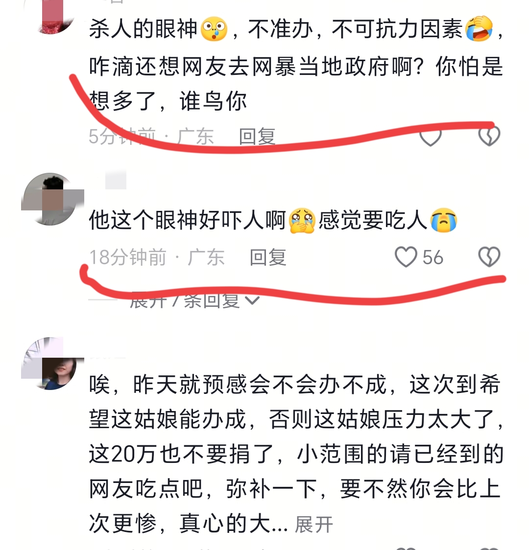 灿灿子一脸委屈的表情,但是眼神凶狠。网友直呼:就你那杀人的眼神,我可不去。