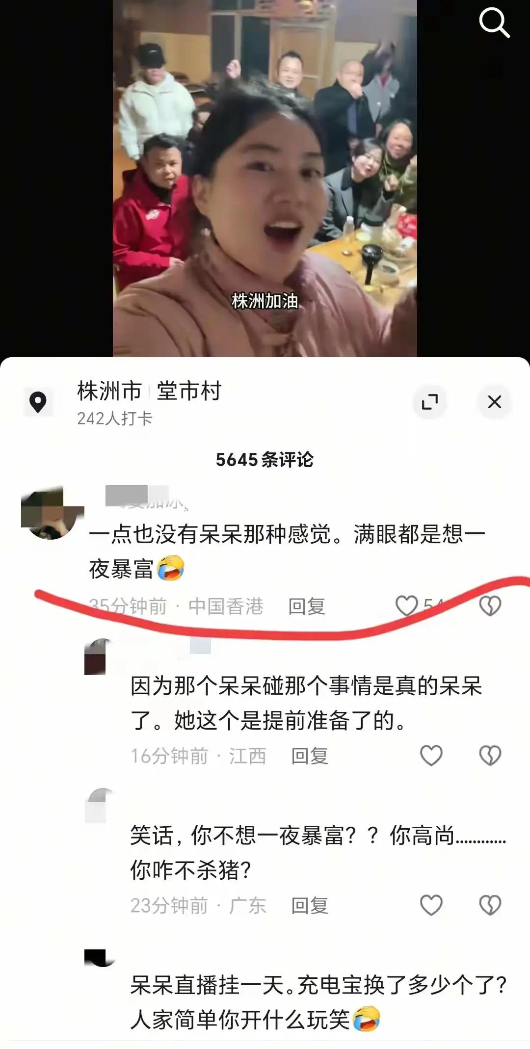 为什么灿灿子全程被骂呢?首先她用力过猛,呆呆的杀猪宴火在无心插柳的真诚。而她一上来就喊比输赢。甚至还直播间闹出要礼物的事件,网友直呼这是眼神里满满的对一夜暴富的渴望,缺乏呆呆的真诚和善良。
