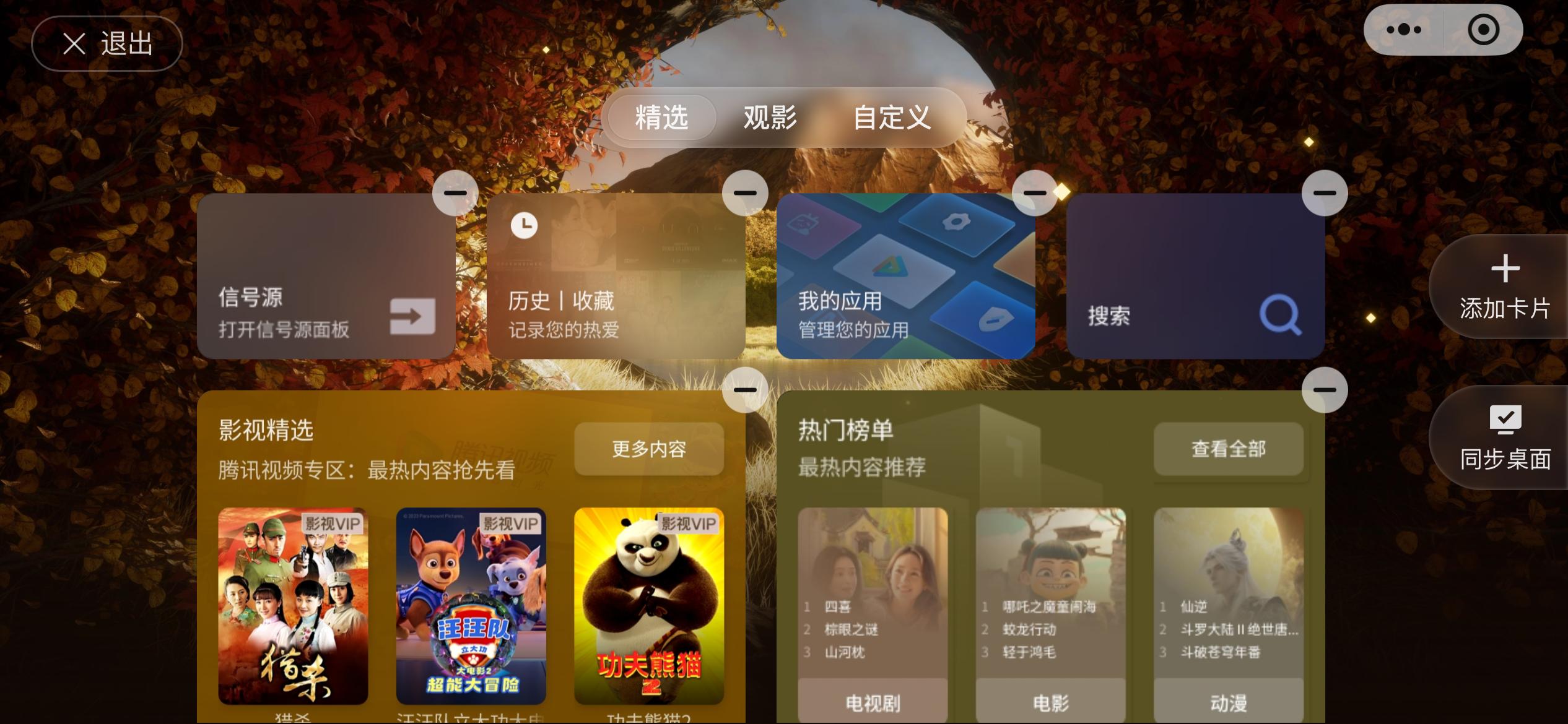 ▲系统采用卡片式布局,支持全局自定义,更方便的是能通过手机编辑设置 —— 比起用遥控器一点点操作,手机端调整的便利性大幅提升,能快速把常用功能、应用放在显眼位置,贴合自己的使用习惯。