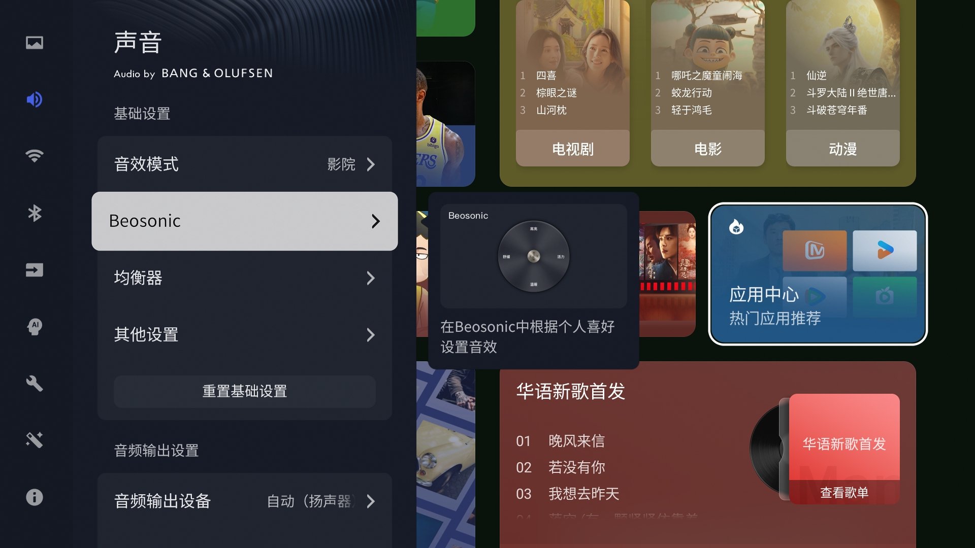 ▲TCL 在这套音响上确实花了不少心思,电视里设置了不少可自定义的声音选项,环绕感、低音、人声、高音都能单独调节,操作很直观,能调出自己喜欢的效果。