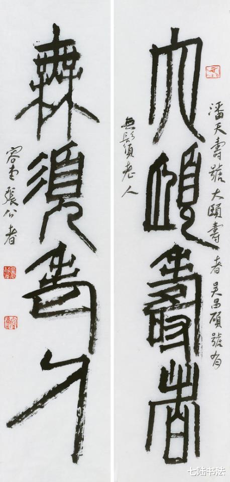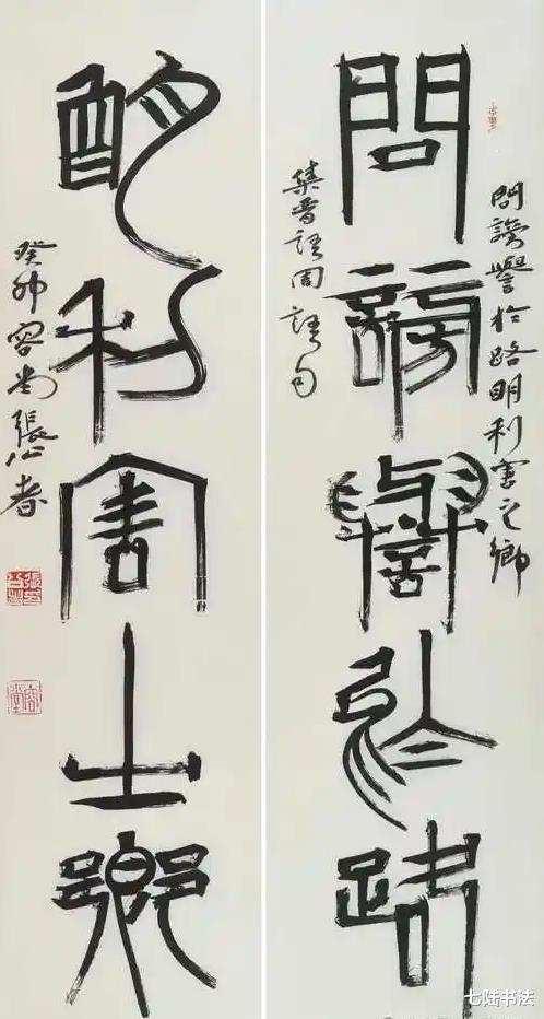 在笔墨上,将篆刻的刀味融入笔法,使线条更具金石气与立体感;在形式上,注重作品的整体布局与视觉效果,既符合传统书法的审美规范,又适应现代展厅的展示需求。