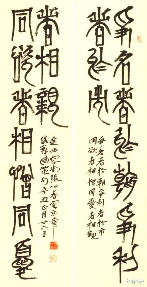 这种对篆书的驾驭,并非简单的仿古复制,而是在吃透传统笔法精髓后,对线条质感与空间布局的重新诠释,体现了 “通古今之变” 的艺术追求。