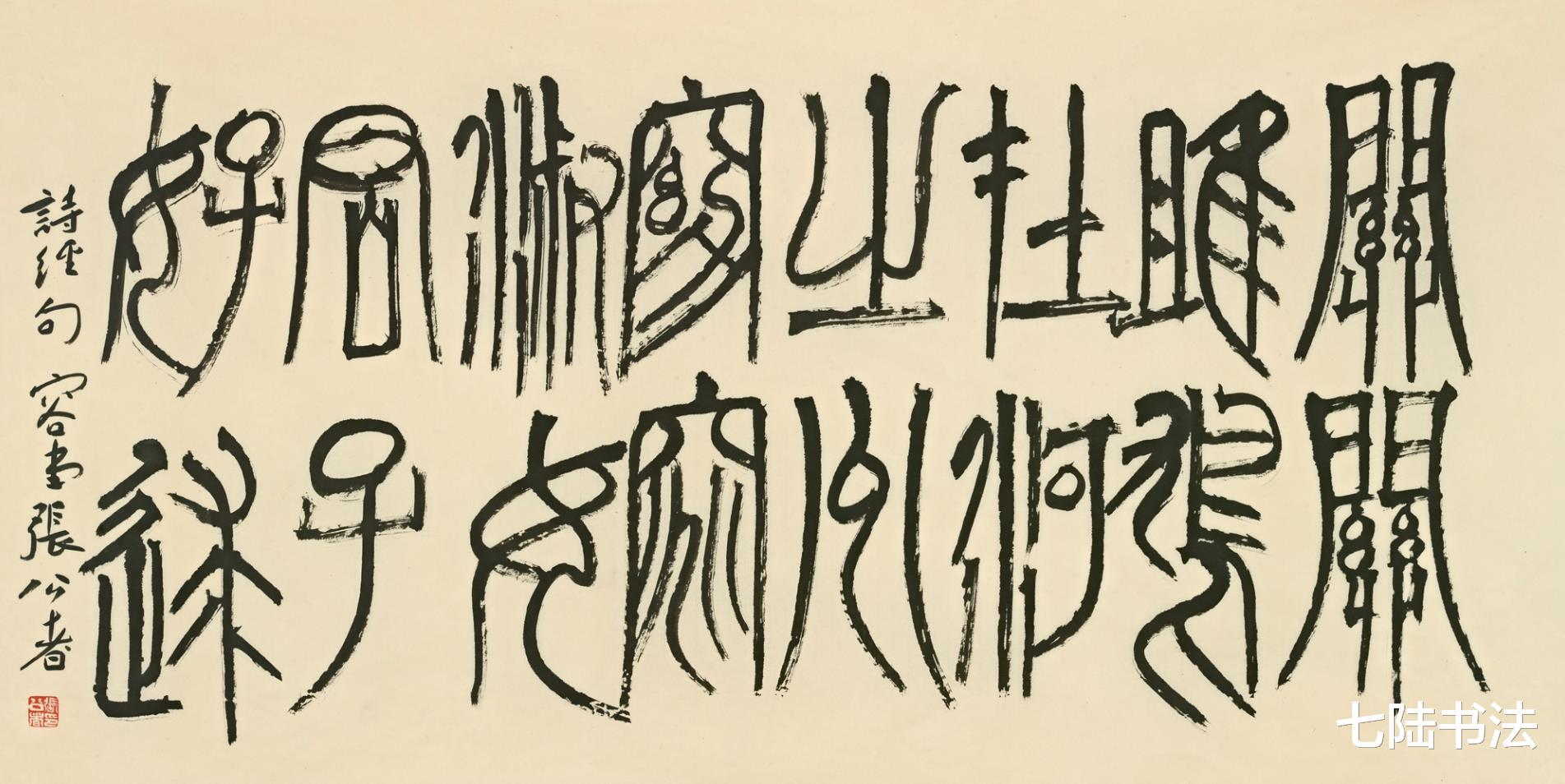 其篆书作品最能体现对传统的深度继承与突破,既延续了秦篆的庄重规整,又融入了金石碑版的雄浑气息,线条遒劲有力、结体匀称端庄,将秦汉时代的庙堂气象与个人的文化感悟完美融合。