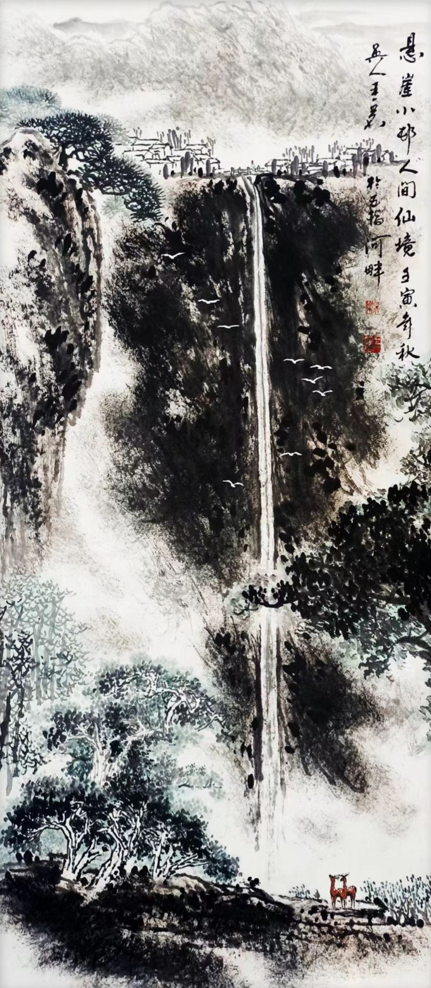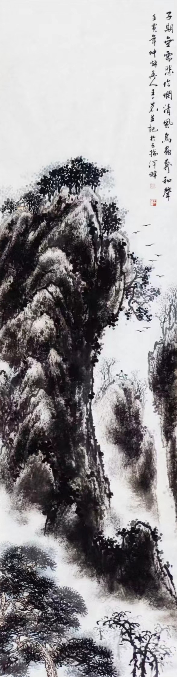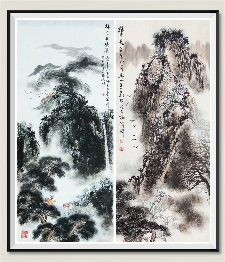 其创作深研传统,由浙派、金陵画派上溯宋元诸家,广采傅抱石、龚贤、黄公望等先贤神髓,又坚持外师造化、入古出新,集众家之长而自成风貌。山水雄浑秀润、花鸟清逸生动,画面诗韵充盈,无燥无火,尽显自然生机与文人意趣。