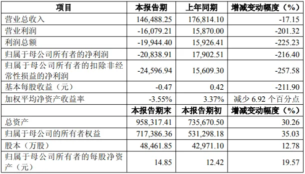 近日,天岳先进(688234.SH)披露的2025年业绩快报,给资本市场泼下一盆冷水。数据显示,公司当年营收14.65亿元,同比下滑17.15%,归母净利润亏损2.08亿元,较上年暴增216%。