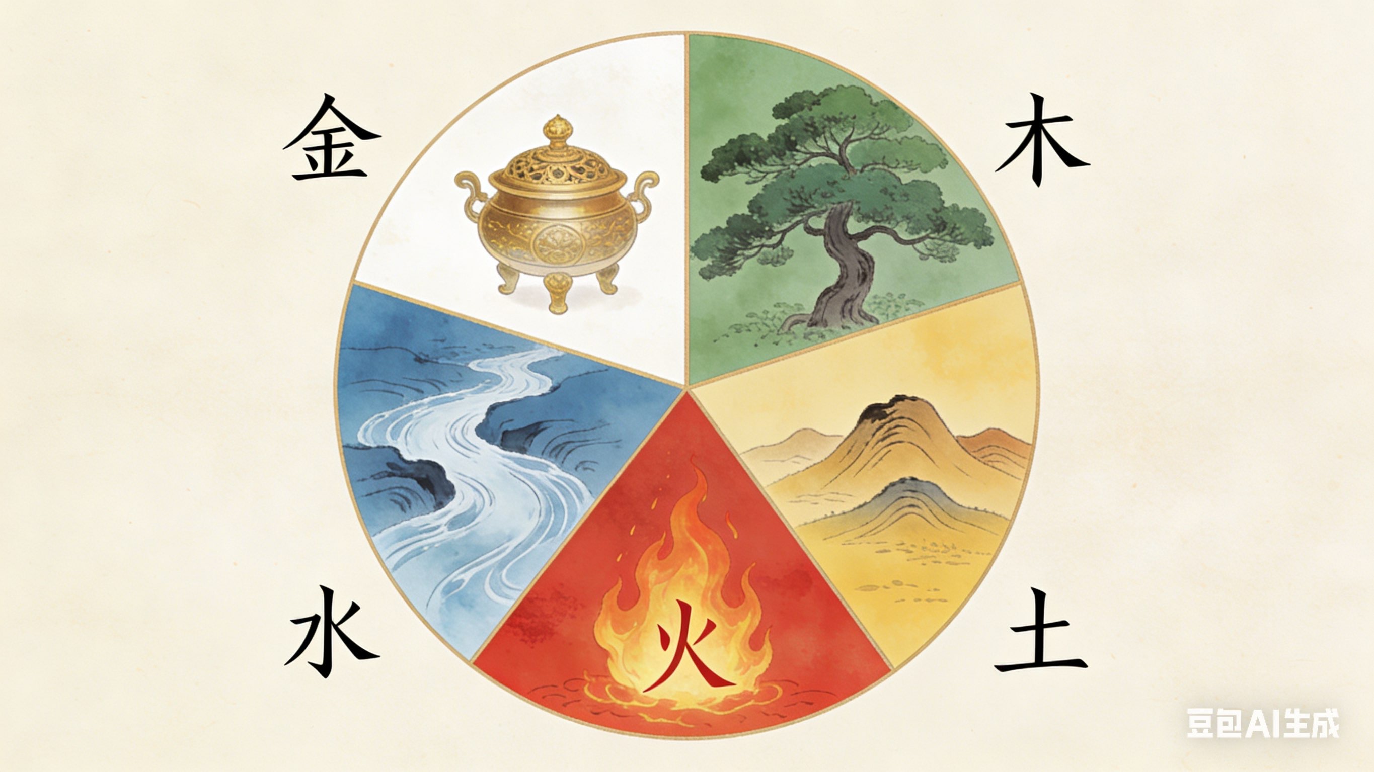 火性升腾,其势猛烈,其光温暖。燧人氏钻木取火,人类始别于禽兽。火主礼,照亮暗夜,驱散蒙昧;烹煮食物,促成聚落。然火无定性,过旺则燎原成灾,不足则黯淡无光。火生土,燃尽万物而化灰烬,毁灭与孕育并存,是为涅槃之理。
