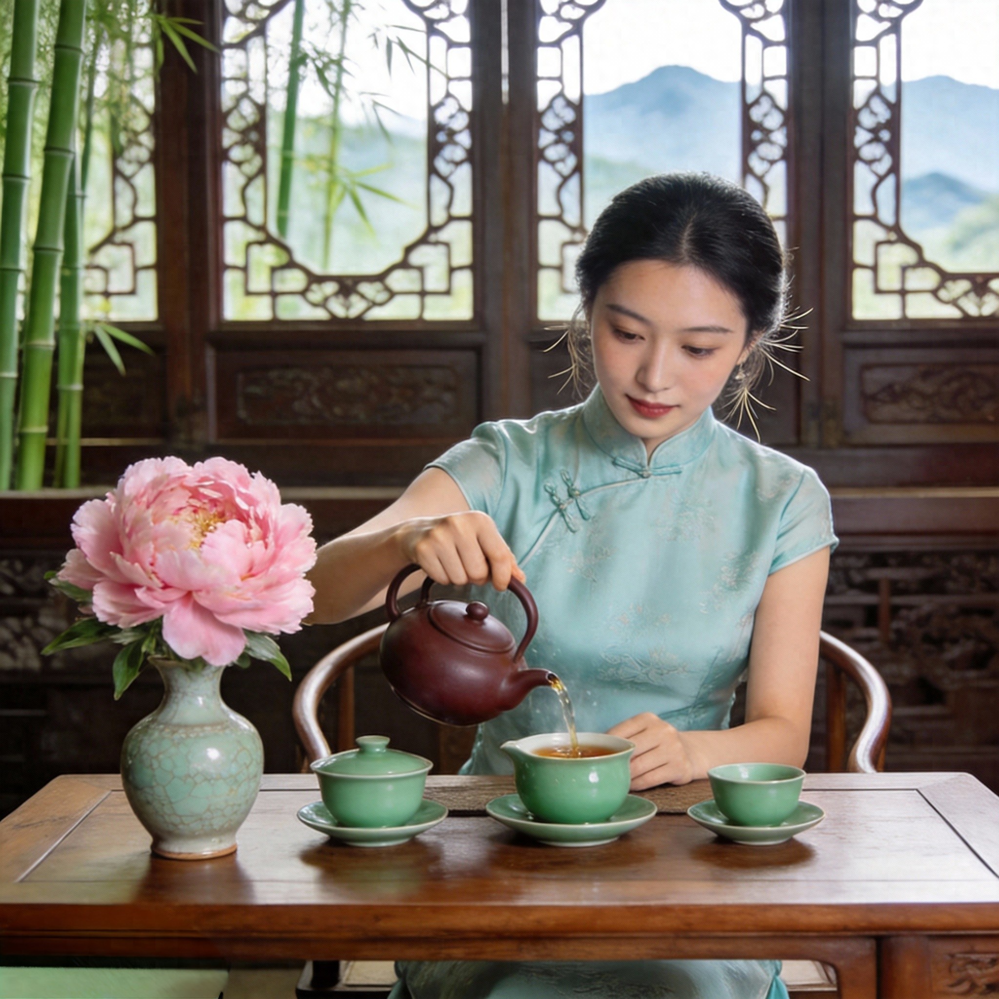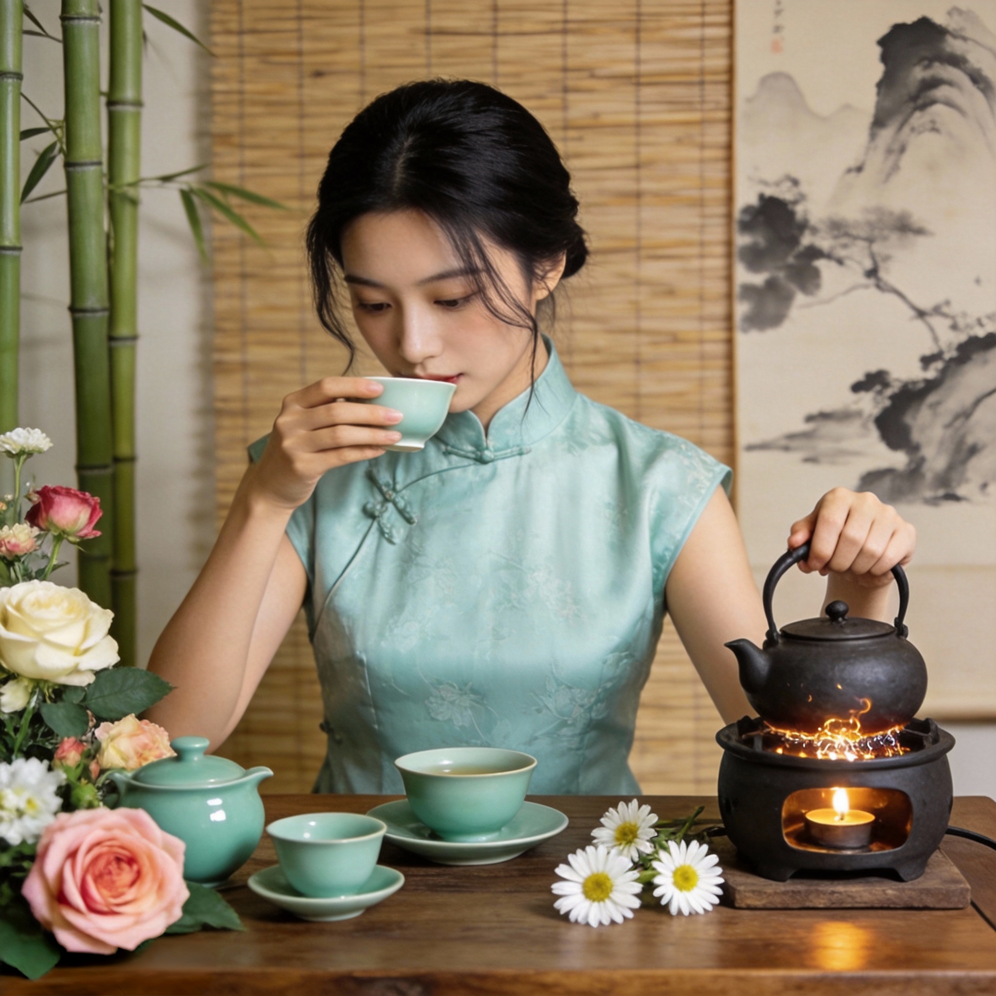 绿茶不发酵,保留了最原始的鲜爽,像那些“出淤泥而不染”的女人——她们活得清醒,活得干净,像一缕春风,吹散世间的浑浊。