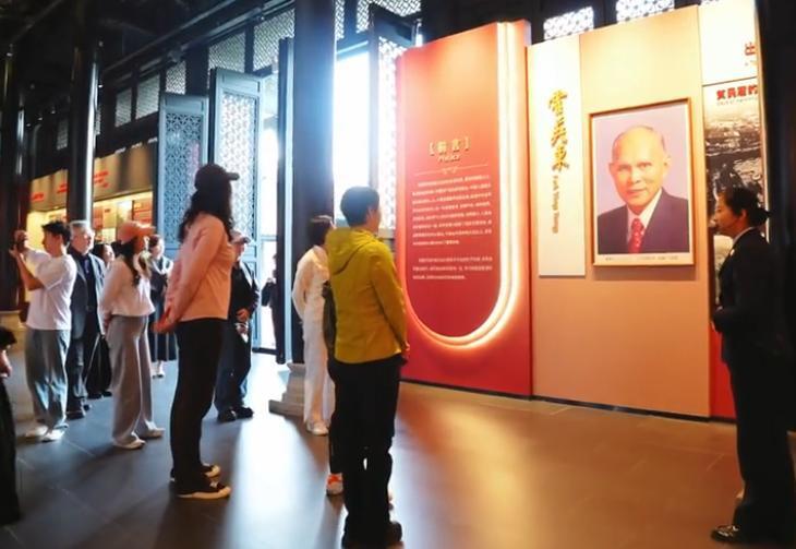 接着画面切换到了室内大厅,墙上挂着名人的画像,旁边有工作人员正在为他们讲解,大家听得很认真。