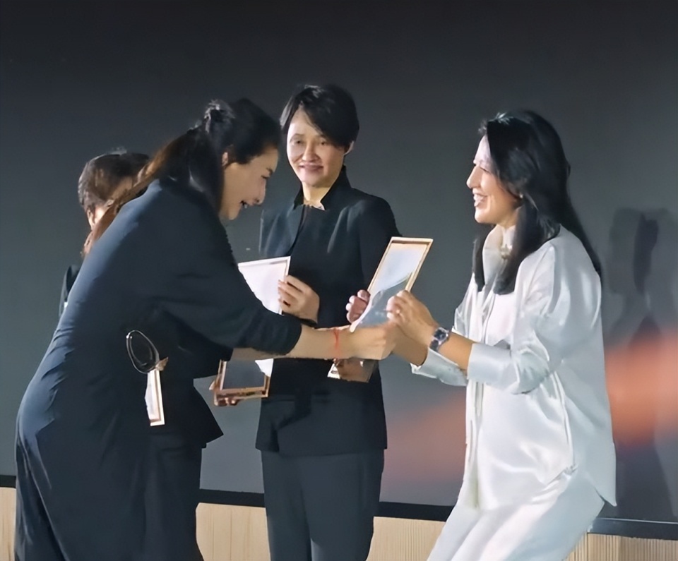 尤其是在台上发言的时候,看上去既大气又端庄,颁奖环节,她亲自将荣誉送到大家手中。