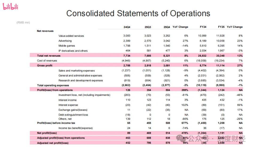 2026年3月,哔哩哔哩(下称B站)发布2025年全年财报,这份承载着七年期待的成绩单,终于划下了公司自上市以来的亏损句点,经调整净利润25.88亿元,总营收303.48亿元同比增长13%。