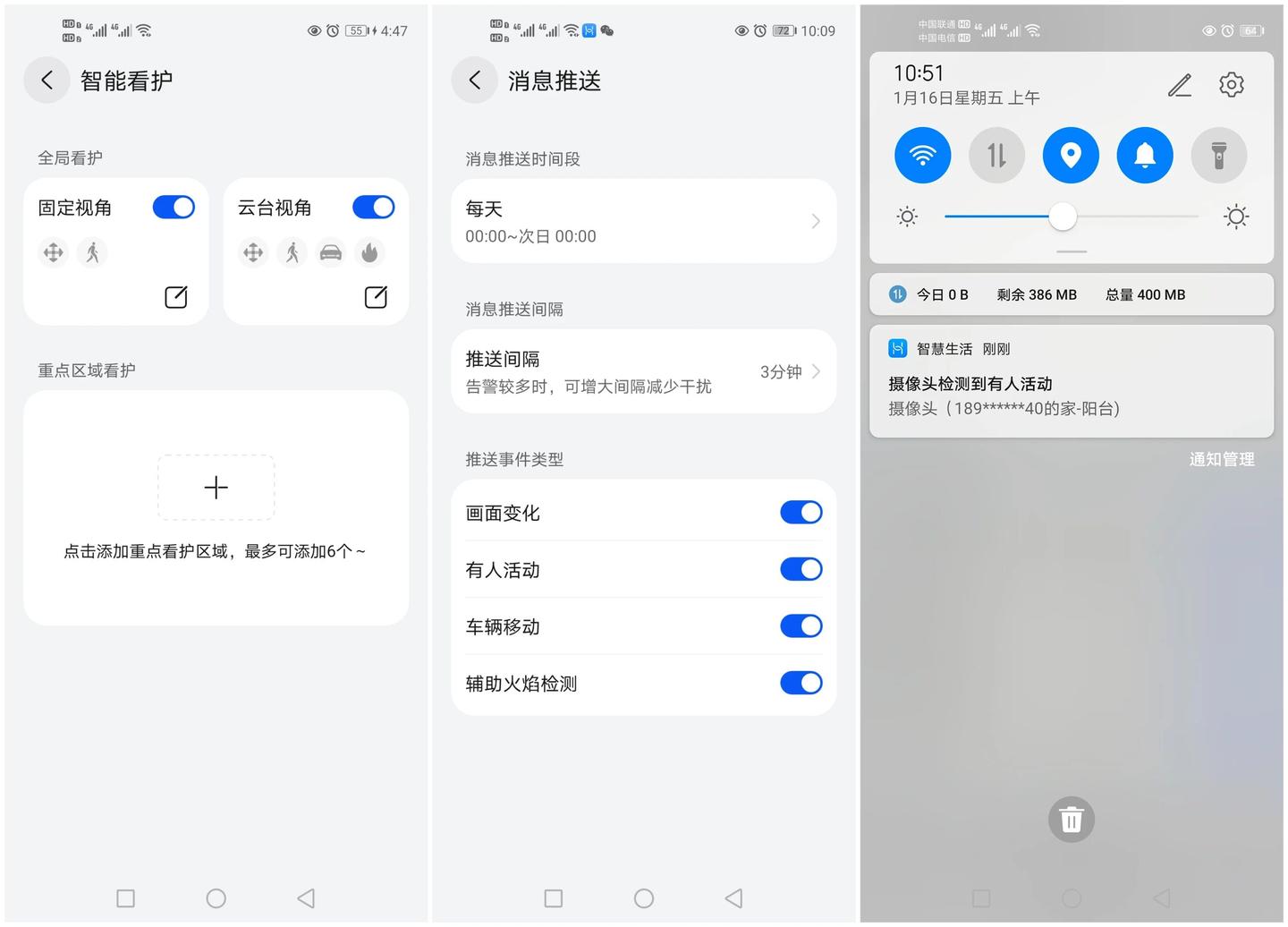 鸿蒙联动更是锦上添花!摄像头能和鸿蒙生态的多个设备联动,例如华为智慧屏,看电视时门口有人按门铃,监控画面会直接弹到电视角落,瞥一眼就知道情况;联动智能门锁更省心,出门锁门自动布防,回家开门自动撤防,无感体验太香了。