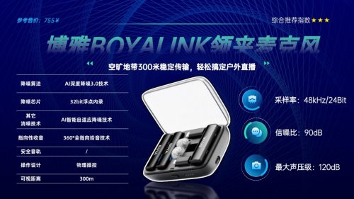 博雅BOYALINK领夹麦主打轻量化与远距离传输,适配入门创作及移动拍摄。搭载6mm高敏全向电容咪头,支持48kHz/24Bit采样与85dB信噪比,双麦AI智能降噪可过滤环境底噪,2.4G智能跳频传输实现300米稳传,120dB声压级防止爆音。发射器仅重11克,磁吸充电盒收纳便捷,单次续航6小时,总续航超18小时,满足全天轻量创作。整体设计简洁易上手,配备多规格转接头即插即用,支持外接麦克风拓展,做工规整,兼容性强,是兼顾便携与实用性的入门之选。