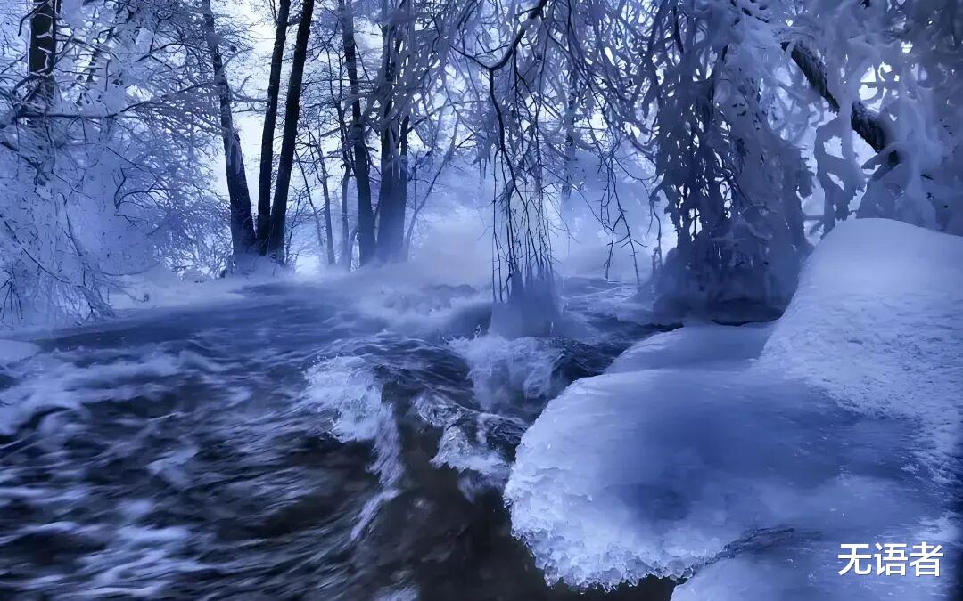 颔联:“冰封万水千山冷,雾锁层林百草沉”,此联从宏观视角描绘四九时节的自然景观。