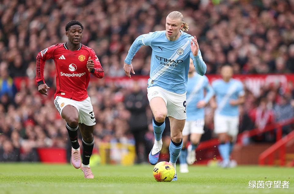虽然哈兰德的全场比赛触球次数只有15次,但他留在场上,对曼联后防线都是一种威胁。