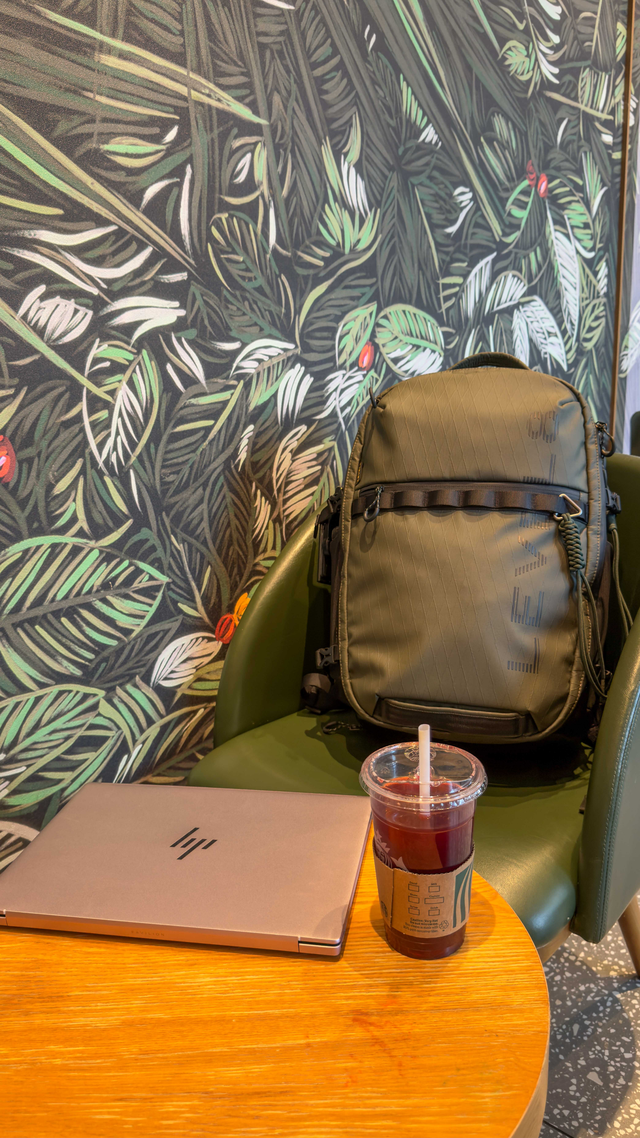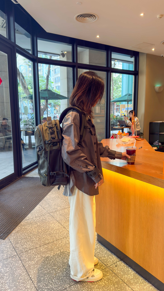 可能有人会担心:32L的大包,日常背会不会太大、太户外?其实完全不会。苔原绿的配色加上利落的剪裁,让它非常“都市”。背着它去咖啡馆写稿,放在旁边完全就是一个时尚单品,不会显得突兀。