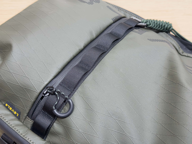 潜行者的正面配有MOLLE织带,挂个小三脚架轻轻松松。日常使用也可以挂个小玩偶或者充电宝,让背包更有个性化。
